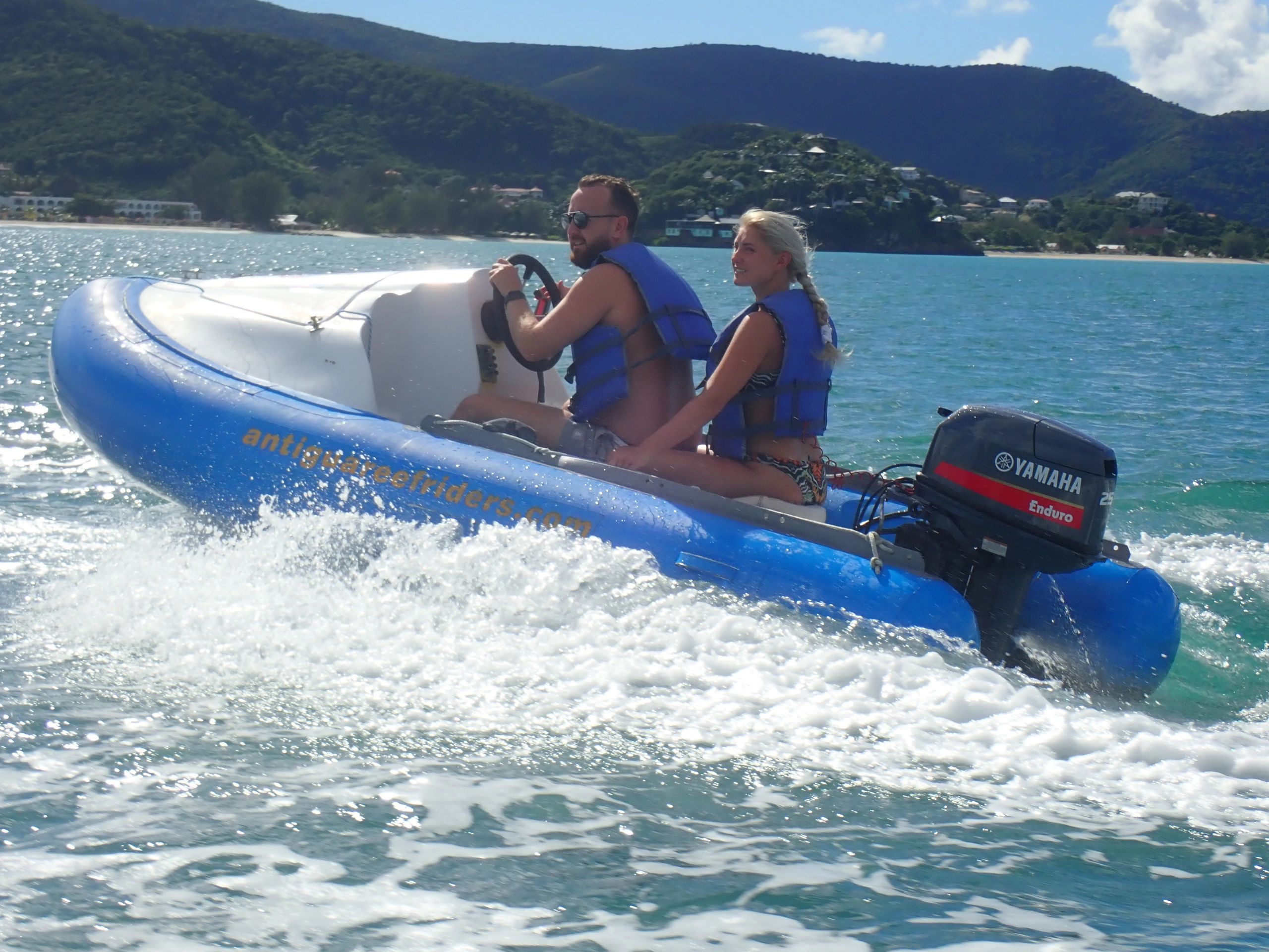 Experience our fantastic, award-winning half-day cruise ship or hotel excursion. Follow our guide as you DRIVE YOUR OWN BOAT along the beautiful Antiguan coastline and snorkel at Cades Reef. No experience required.